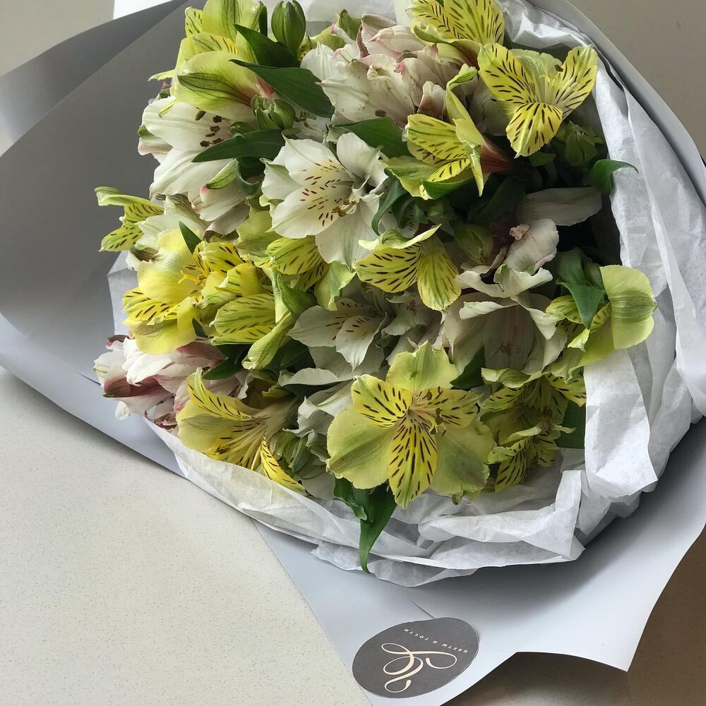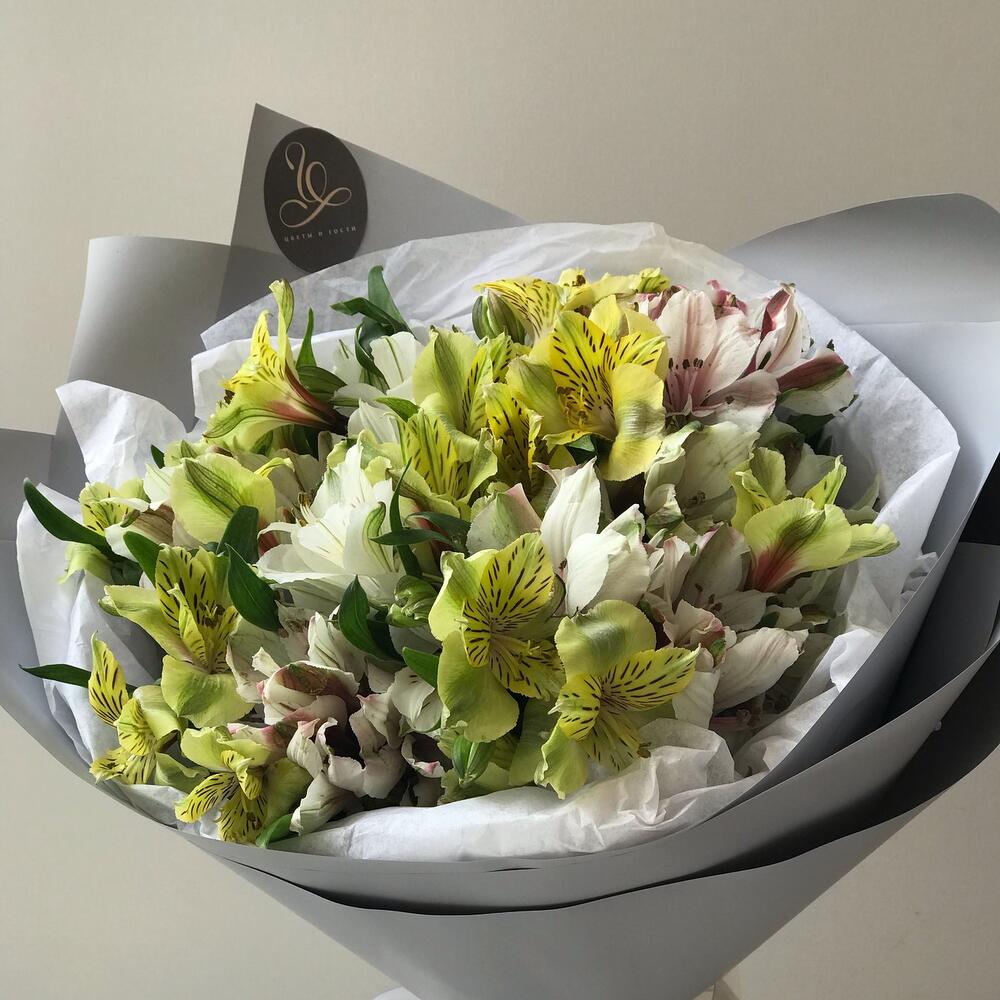 Альстромерия – 11 шт.Лента атласная – 1 шт.Тишью – 1 шт.Корейская пленка – 3 шт.