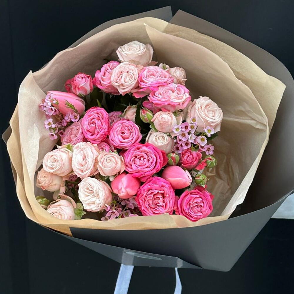 15 пионовидных кустовых роз Роял трендсеттер. Букет 310 Kimbirly Flowers