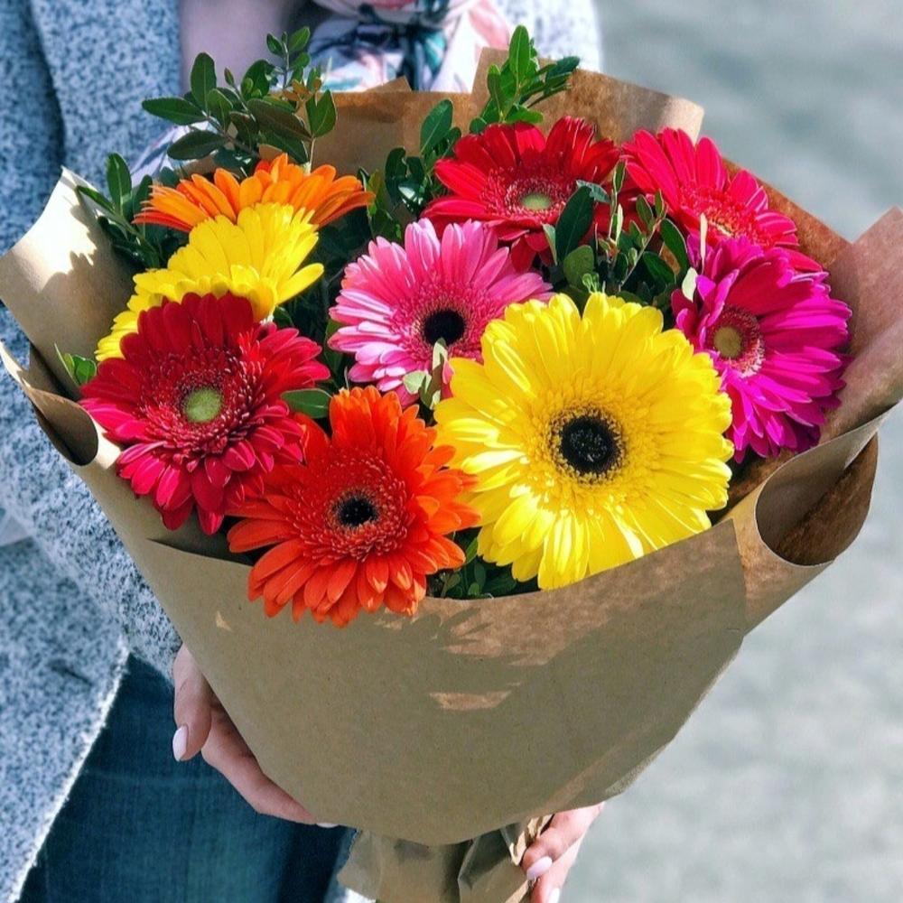 Гербера – 9 шт.Фисташка – 3 шт.Крафт – 1 шт.