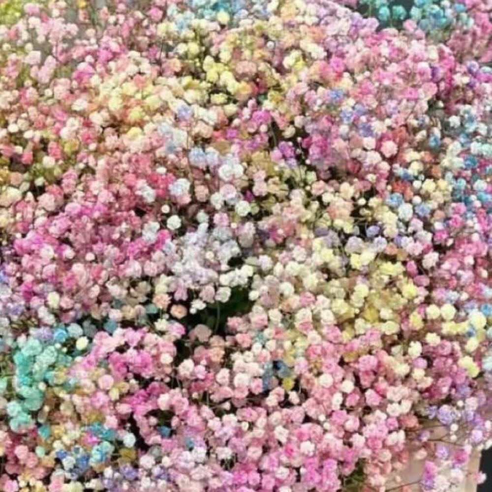 радужная гипсофила – 51 шт.Упаковка дизайнерская – 1 шт.Лента атласная – 2 шт.Открыточка с вашими пожеланиями – 1 шт.хорошее настроение – 100 шт.инструкция по уходу за цветами – 1 шт.коробка переноска – 1 шт.Кризал – 1 шт.