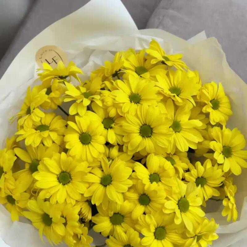 Хризантема Ромашковая – 7 шт.пленка матовая белая – 1 шт.тишью белая хрустящая – 1 шт.