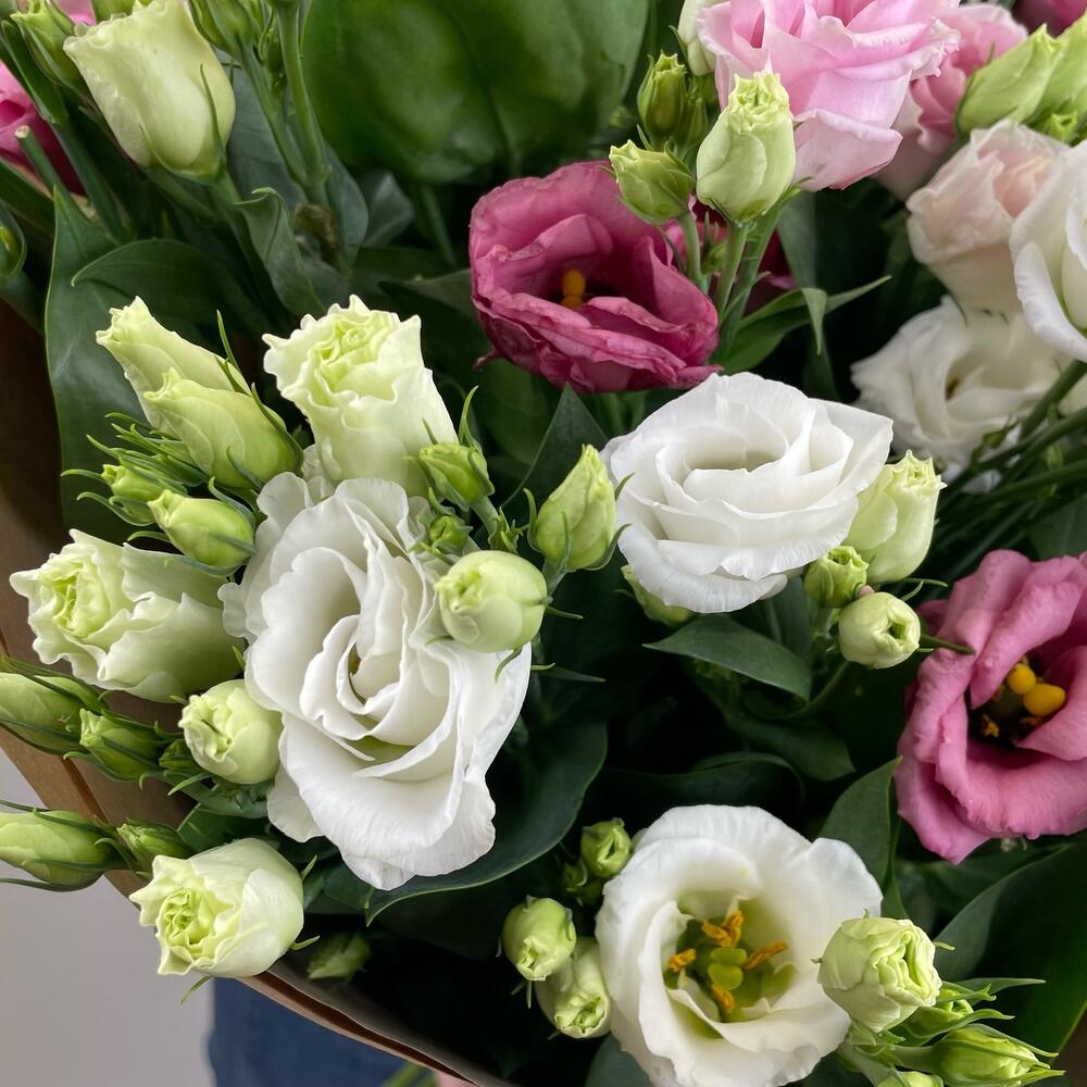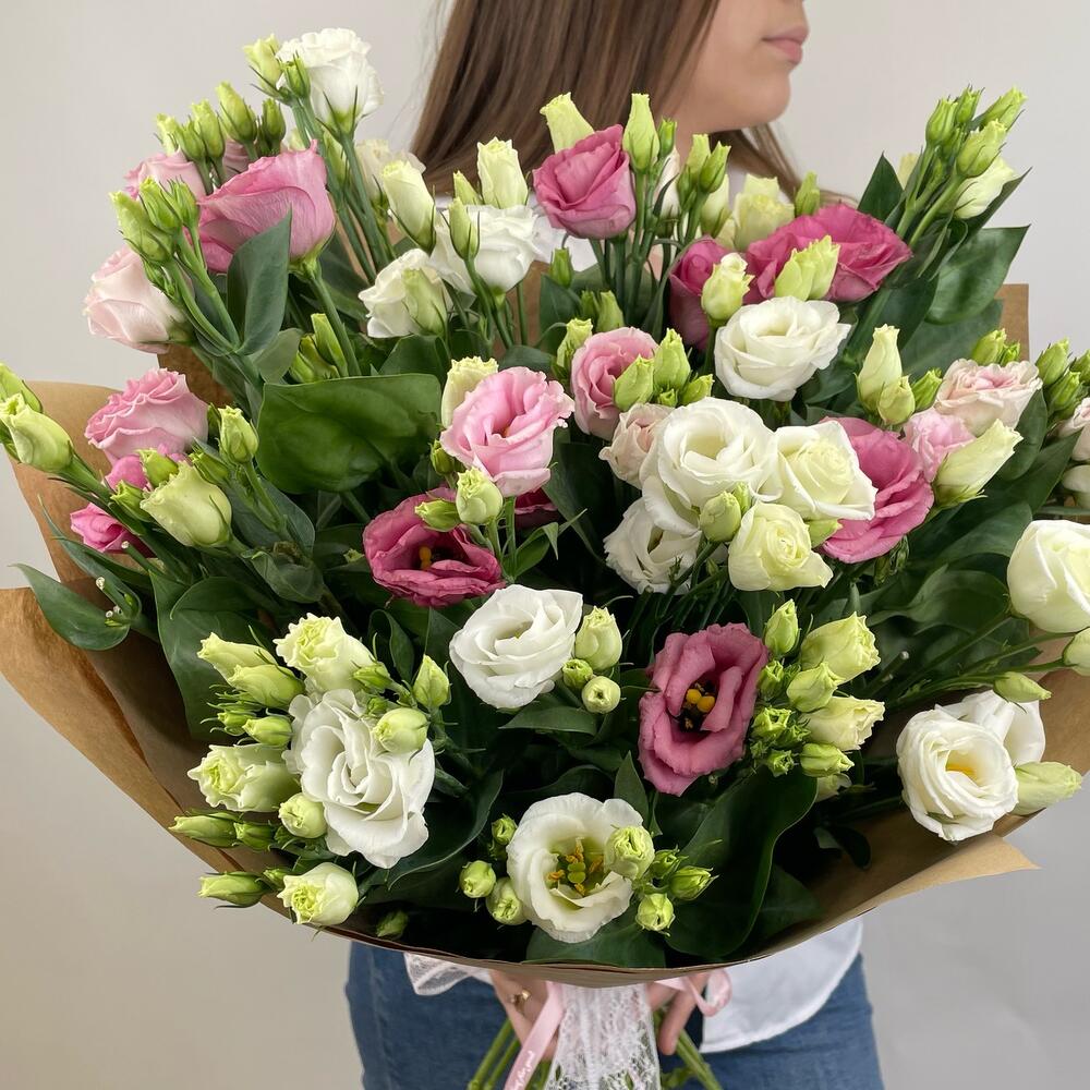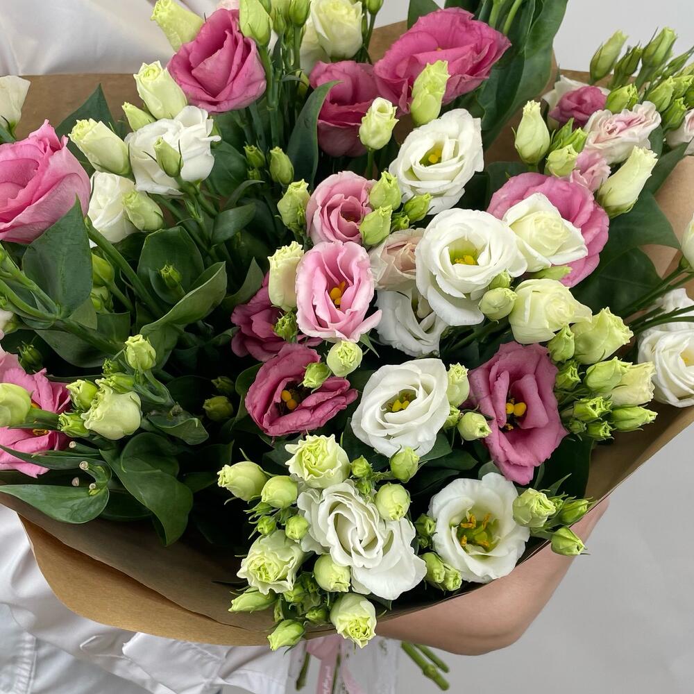 Эустома – 21 шт.Крафт упаковка – 2 шт.Лента – 2 шт.