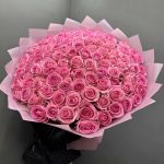 Лента атласная – 1 шт.Дизайнерская упаковка – 5 шт.розы эквадор (60 см) – 101 шт.