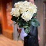 7 белых роз Эквадор 50 см