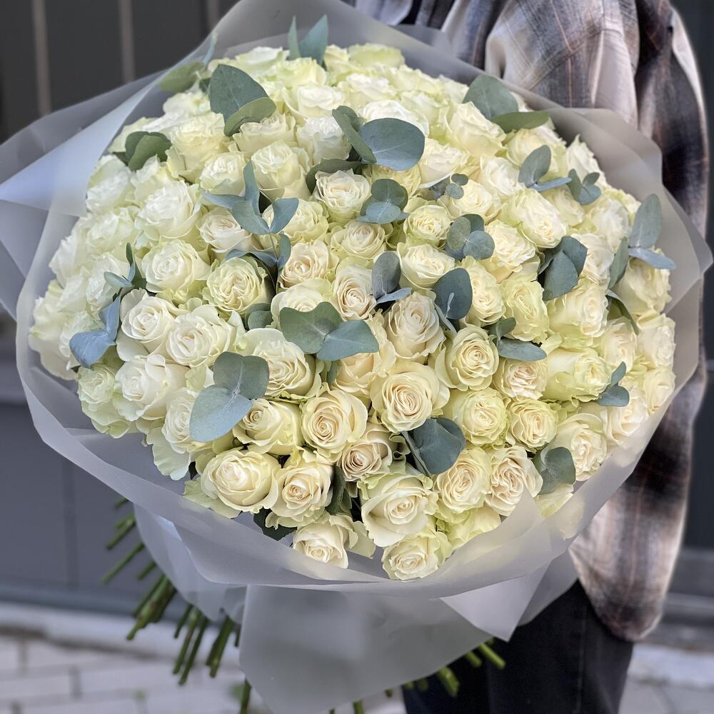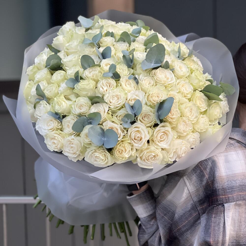 Букет из 151 белой розы и эвкалипта