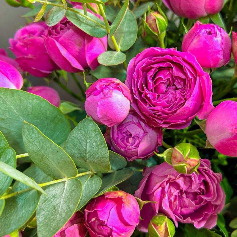 Кустовые розы, Лизиантусы, Розы, Сухоцвет