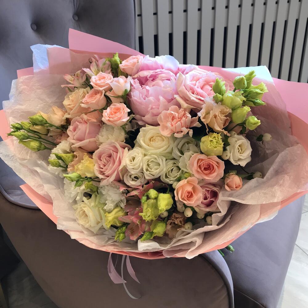 Категорий: Гвоздики, Кустовые розы, Лизиантусы, Пионы, Розы
