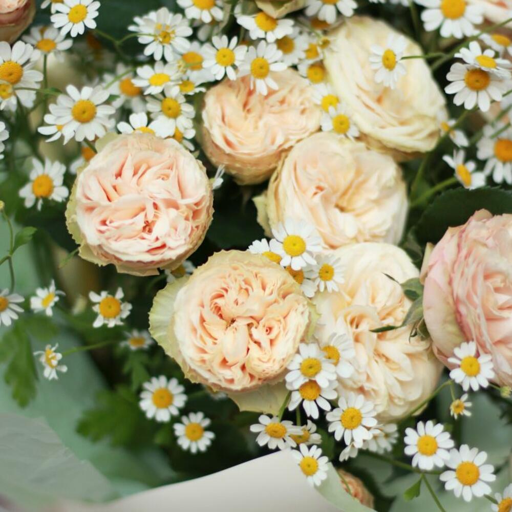 Гвоздики, Кустовые розы, Пионовидные розы, Розы