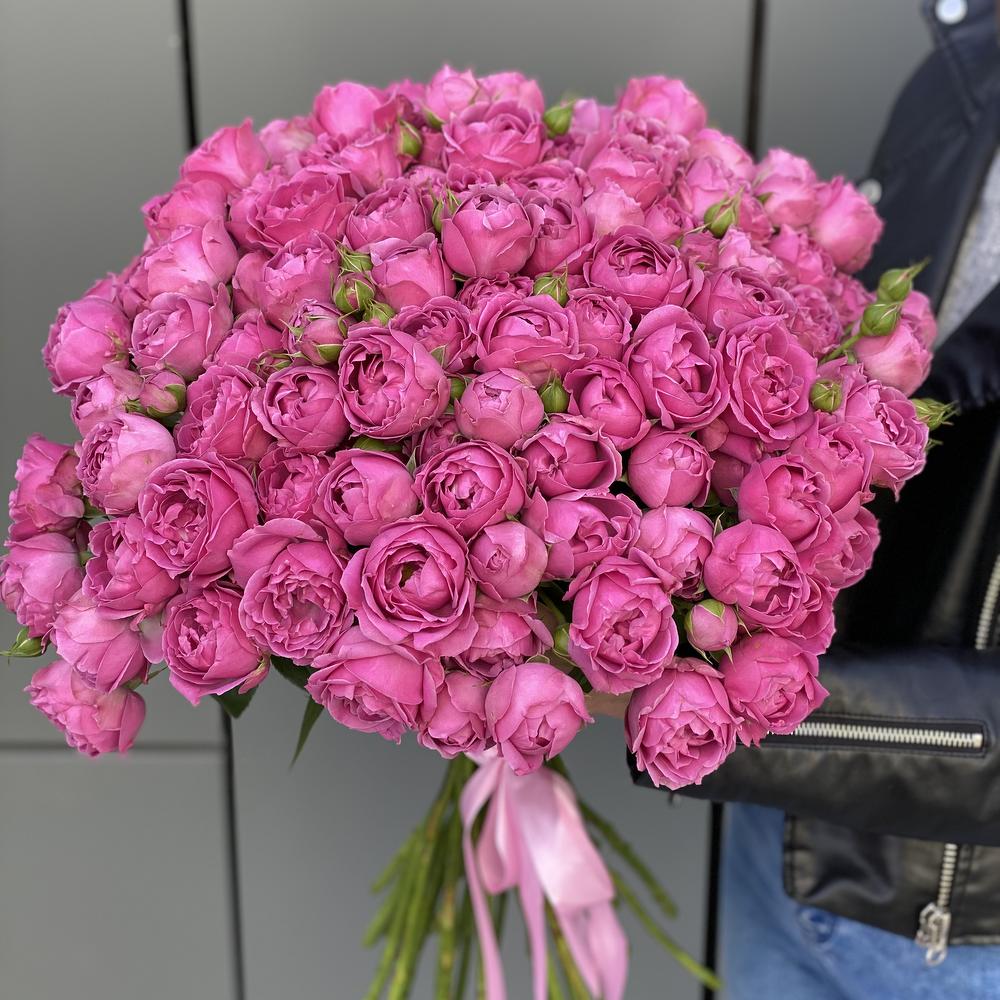 Оформление лента атласная – 1 шт. кустовая пионовидная роза misty bubbles – 35 шт.