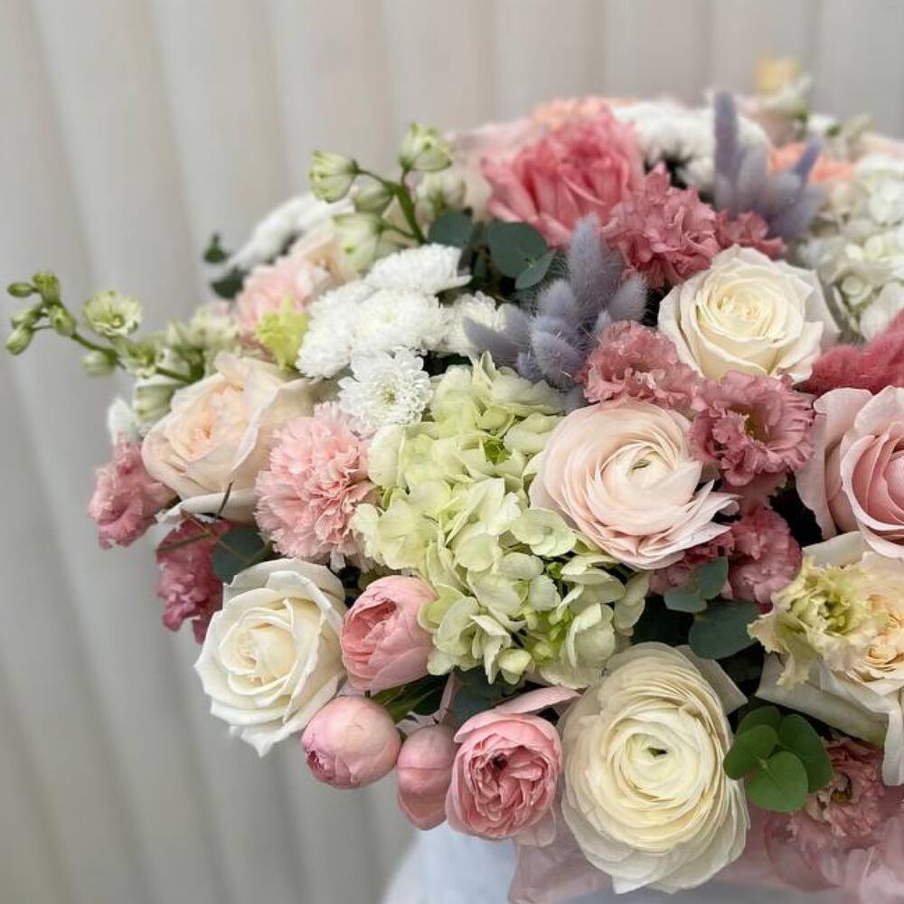Категорий: Гвоздики, Гортензии, Лизиантусы, Розы, Сухоцвет