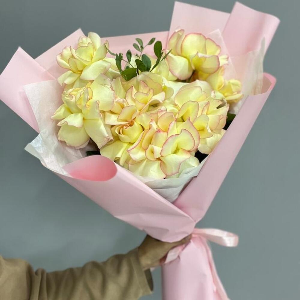Альстромерии, Кустовые розы, Лизиантусы, Пионовидные розы, Розы, Ромашки