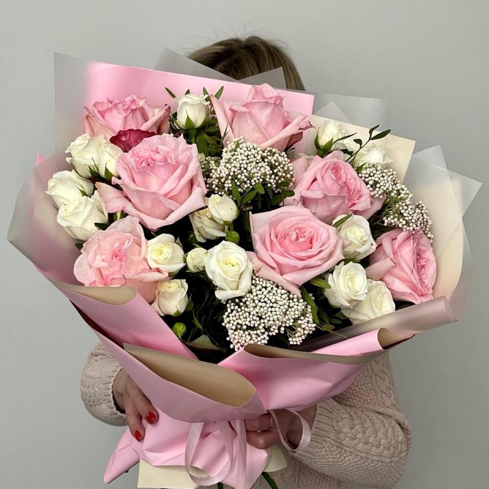 Гвоздики, Кустовые розы, Лизиантусы, Пионовидные розы, Розы