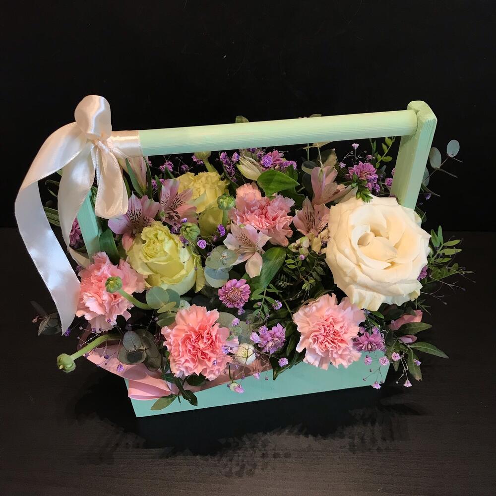 Гвоздики, Кустовые розы, Пионовидные розы, Розы