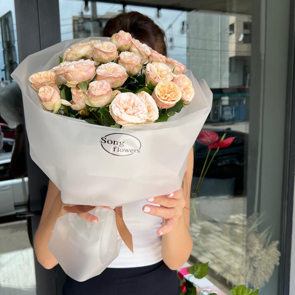 Альстромерии, Кустовые розы, Лизиантусы, Пионовидные розы, Розы, Ромашки