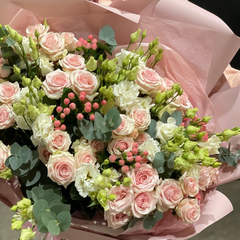 Гвоздики, Кустовые розы, Пионовидные розы, Розы