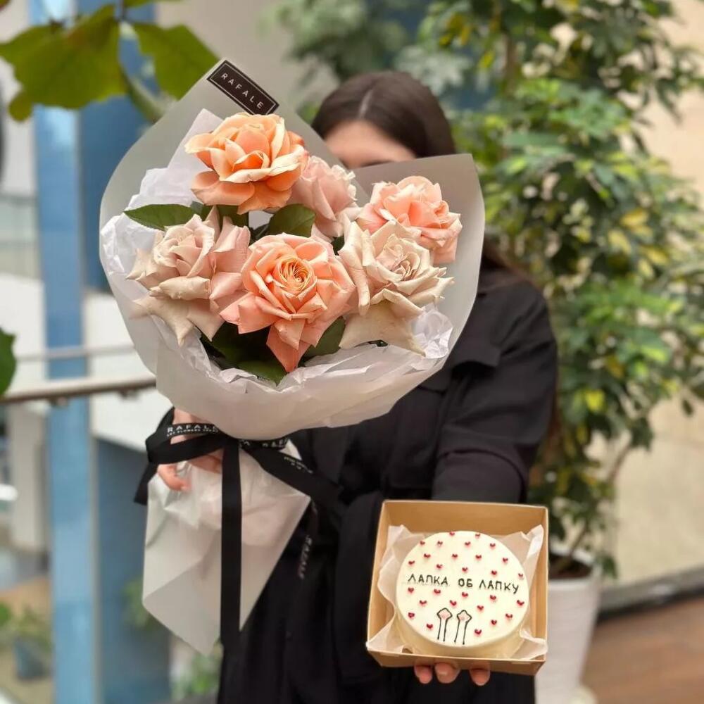 Чудесный набор из голландских роз и чудесного бенто тортика! Порадуйте своих близких!