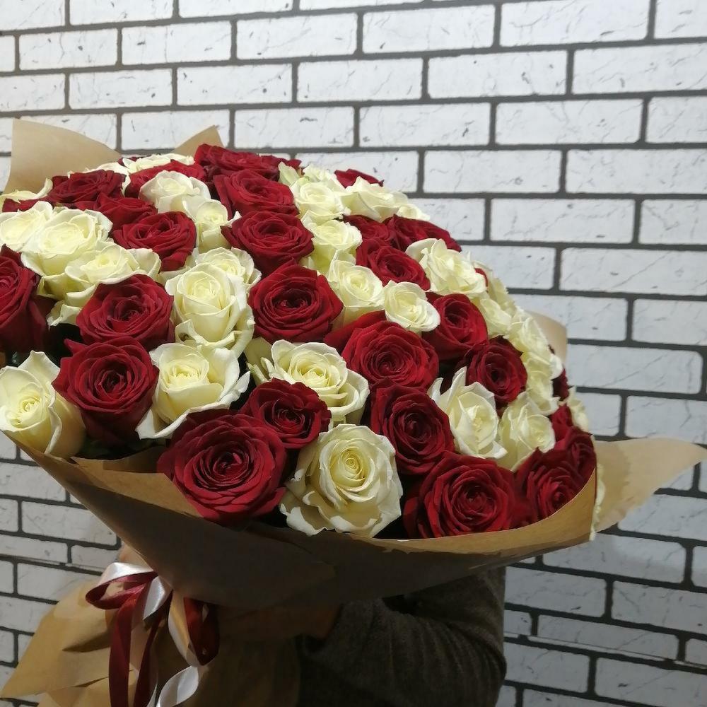 роза 80 см эквадор – 101 шт.Дизайнерская упаковка – 3 шт.Лента атласная – 2 шт.