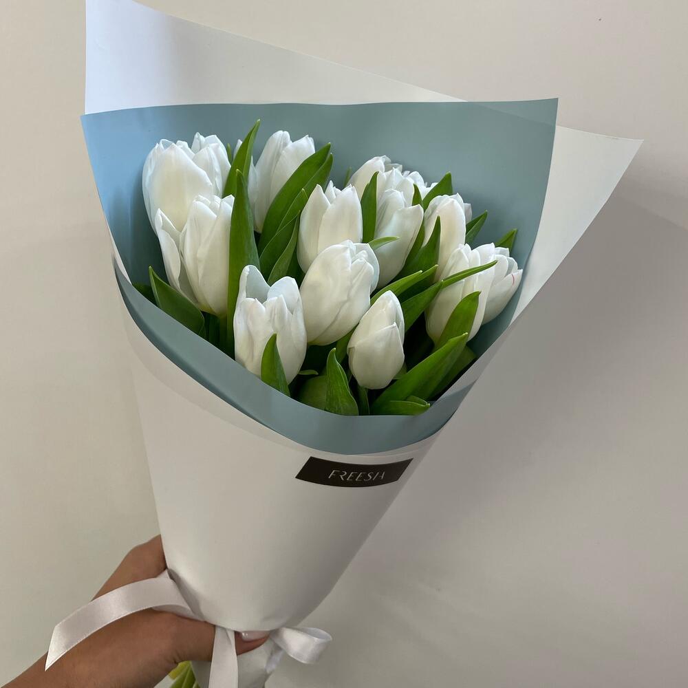 Тюльпан белый – 15 шт.Дизайнерская упаковка – 1 шт.транспортировочная упаковка – 1 шт.