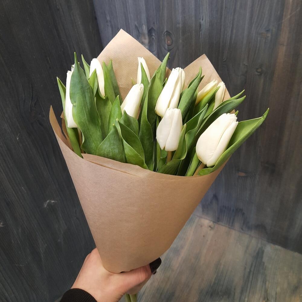 Букет из 11 белых тюльпанов в крафте