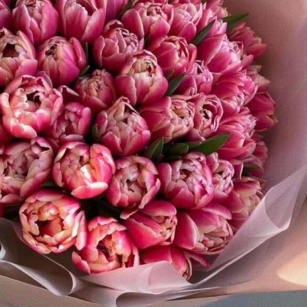 Тюльпан розовый – 51 шт.Упаковка дизайнерская – 2 шт.Лента атласная – 2 шт.Открыточка с вашими пожеланиями – 1 шт.хорошее настроение – 100 шт.коробка переноска – 1 шт.Кризал – 1 шт.