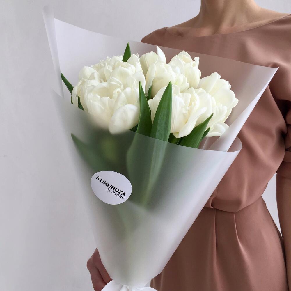 Монобукет 12.2 пион тюльпаны белые